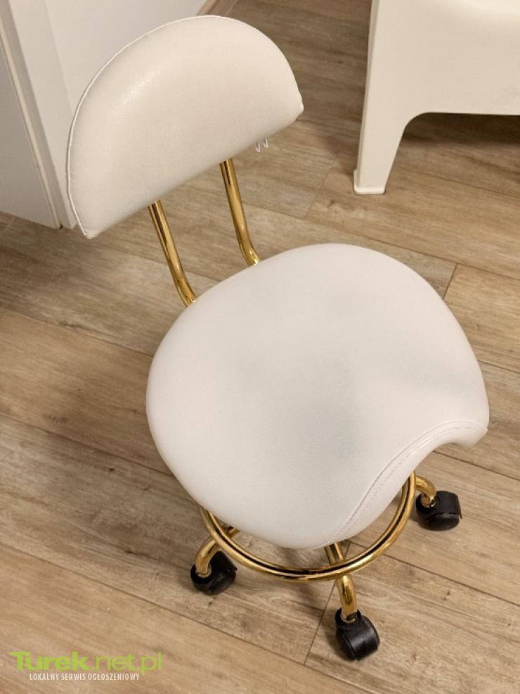 Fotel kosmetyczny / taboret z oparciem – biały ze złotym wykończeniem