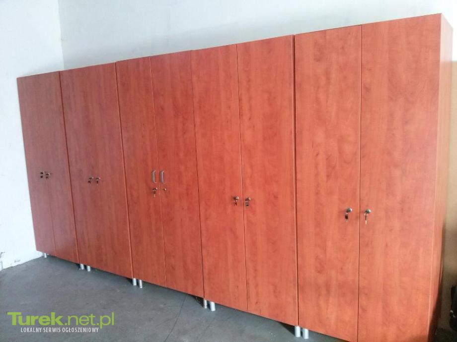 Sprzedam 3 szafy biurowe podwójne wolnostojace o wymiarach 200x80cm, wykonane były przez stolarza na zamówienie kolor czereśnia. Szafy do odbioru w Tuku.