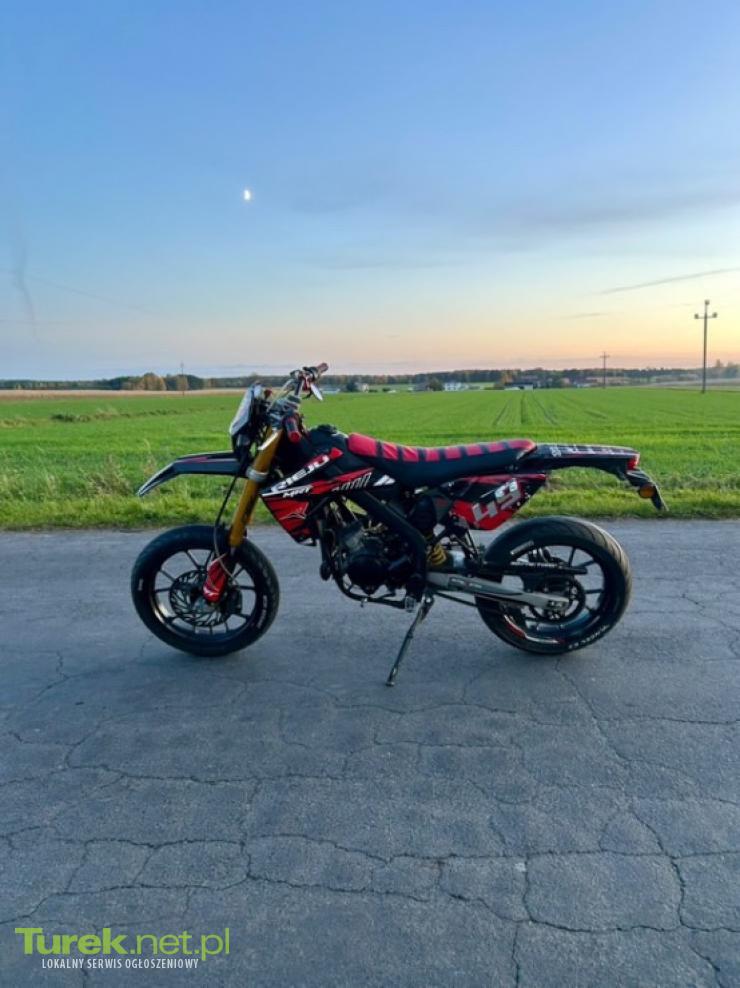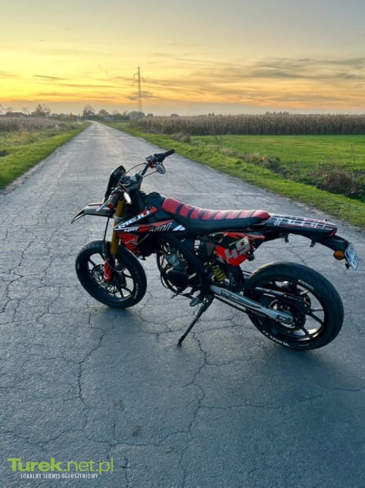 Witam mam na sprzedaż Rieju Mrt Pro 2017 Pojemność 50cc-na kategorię AM Silnik 50 cc, 2-suw, chłodzony cieczą 6 biegów Zawieszenie upside-down (grube lagi 40 mm) Tylne zawieszenie-Gazowy mono-shock z oddzielnym zbiornikiem i systemem PRS Hamulce tarczowe (duża przednia tarcza) Wymienony kompletny napęd Licznik raz działa raz nie-Zostawiam to nowemu właścicielowi Sprzedaję ponieważ mam samochód i moto używam już sporadycznie