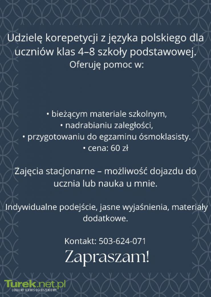 Zapraszam na korepetycje z języka polskiego uczniów klas 4-8 (oferuję przygotowanie do egzaminu ósmoklasisty