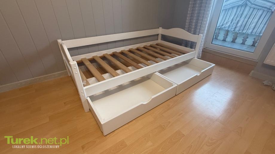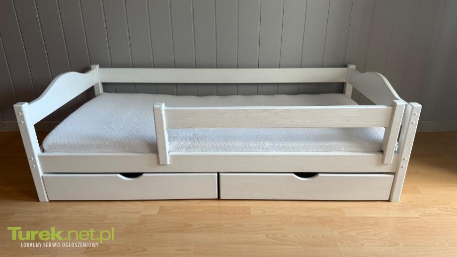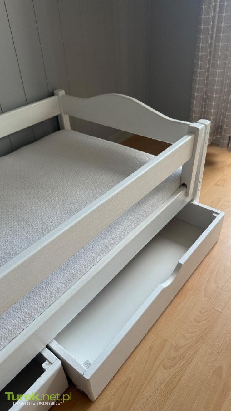Łóżko białe drewniane dziecięce 180x90 szuflady barierka