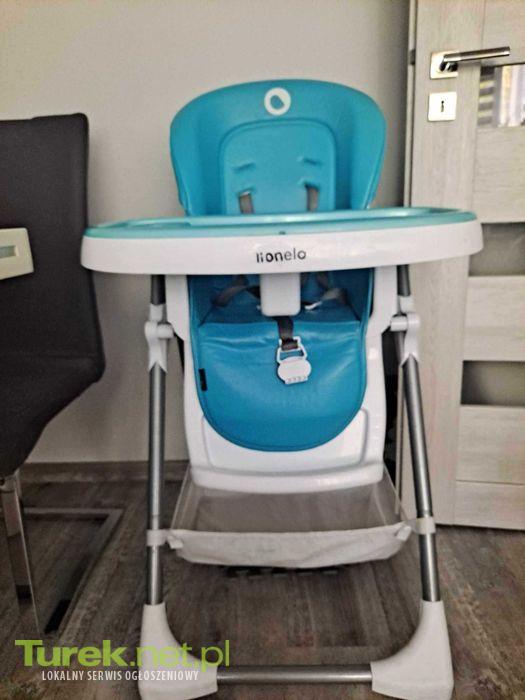 Sprzedam krzesło do karmienia Lionelo linn plus turquoise. Do ustawienia 6 wysokości krzesła, 2 ustawienia tacy i 3 poziomy odchylenia oparcia. Pasy bezpieczeństwa 5-punktowe. Odbiór osobisty