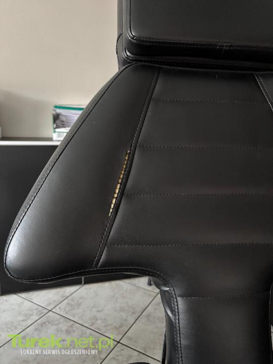 Sprzedam profesjonalny fotel do tatuażu w klasycznym czarnym kolorze. Fotel posiada regulowane oparcie, siedzisko oraz podnóżki, co zapewnia komfort zarówno klientowi, jak i tatuatorowi.