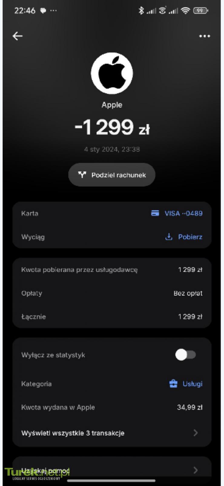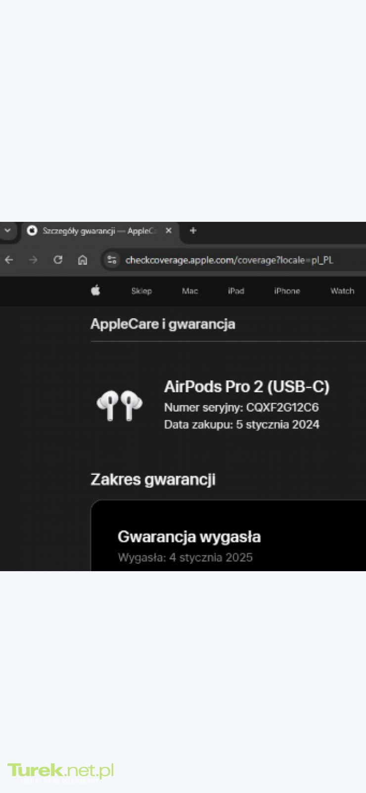 Na sprzedaż oryginalne słuchawki bezprzewodowe Apple AirPods Pro 2. generacji w najnowszej wersji z etui ładującym MagSafe (USB-C). Stan przedmiotu: • Stan techniczny: 100% sprawne, wszystkie funkcje (ANC, tryb kontaktu, dźwięk przestrzenny) działają prawidłowo. • Stan wizualny: Bardzo dobry, sprzęt mało używany, zadbany. • Pochodzenie: Polska dystrybucja, posiadam dowód zakupu z dnia 05.01.2024 (widoczny na zdjęciu). • Weryfikacja: Numer seryjny widoczny na zdjęciach i w systemie Apple potwierdza oryginalność produktu. Specyfikacja techniczna (Model z USB-C): • Procesor: Czip Apple H2 (w słuchawkach) oraz czip Apple U1 (w etui – do precyzyjnego lokalizowania). • Złącze: USB-C (umożliwia ładowanie tym samym kablem co iPhone 15/16, iPad czy MacBook). • Odporność: Klasa IP54 (odporność na pył, pot i wodę) – dotyczy zarówno słuchawek, jak i etui. • Audio: Aktywna redukcja hałasu (do 2x skuteczniejsza niż w 1. gen), Adaptacyjny tryb kontaktu, Dźwięk adaptacyjny, Wykrywanie rozmów. • Łączność: Bluetooth 5.3 (obsługa bezstratnego formatu audio przy współpracy z Apple Vision Pro). • Bateria: Do 6 godzin słuchania na jednym ładowaniu, do 30 godzin łącznie z etui. W sprzedawanym zestawie: 1. Słuchawki AirPods Pro 2 (USB-C). 2. Etui ładujące MagSafe (z głośnikiem i uchwytem na smycz). 3. Oryginalne pudełko (zgodne numery seryjne). 4. Dowód zakupu za słuchawki zapłaciłem 1299 złotych na oryginalnej stronie Apple. Zapraszam do kontaktu i zakupu. Możliwy odbiór osobisty lub wysyłka.