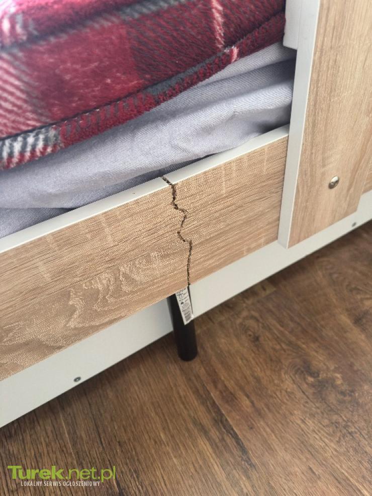 Posiadam dwa łóżka w rozmiarze 80/160. Jedno łóżko jest w dobrym stanie - cena 70 zł. Drugie ma pękniętą przednią belkę, ale jest wzmocniona i trzy nogi wystają z przodu. Drugie jest gratis.Łóżka posiadają schowki na rzeczy, są w dobrym stanie. Łóżko jest na stelażu. Dołożę materace. Łóżka były kupione nowe, używane przez rok. Podczas montażu zostały dodatkowo sklejone dla wzmocnienia. Dlatego są w formie złożonej. Odbiór osobisty.