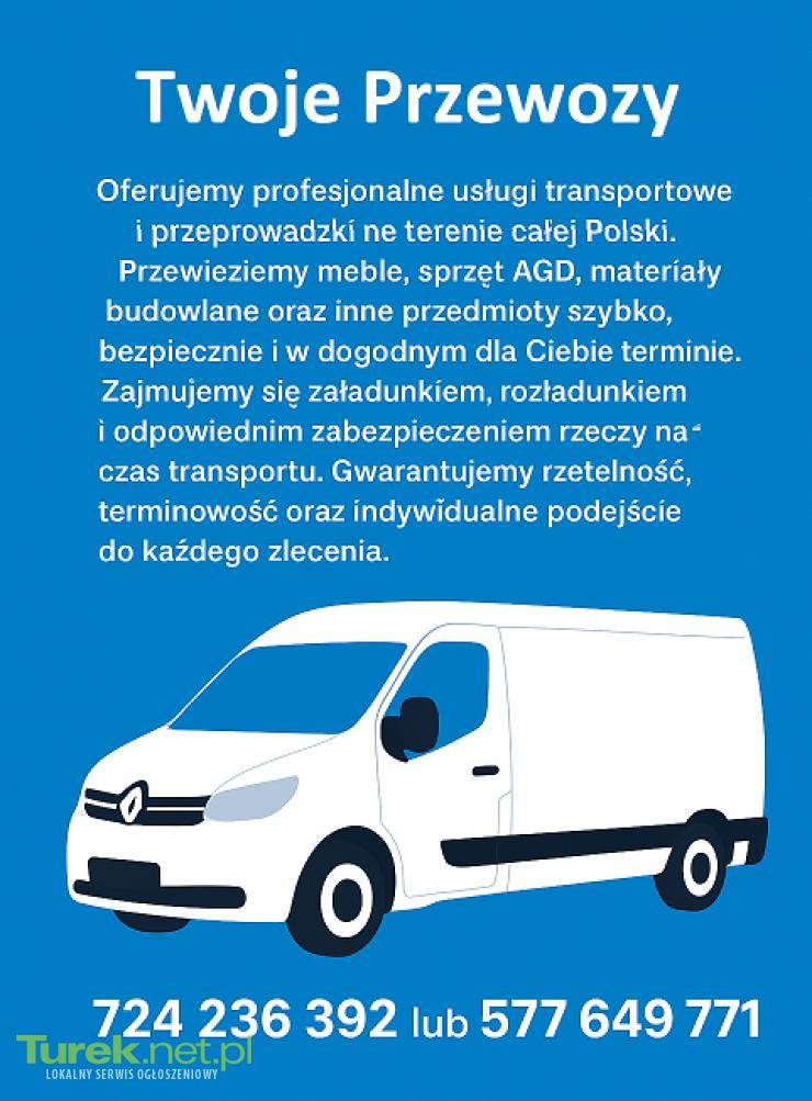 Oferujemy profesjonalne usługi transportowe i przeprowadzki na terenie całej Polski. Przewieziemy meble, sprzęt AGD, materiały budowlane oraz inne przedmioty szybko, bezpiecznie i w dogodnym dla Ciebie terminie. Zajmujemy się załadunkiem, rozładunkiem i odpowiednim zabezpieczeniem rzeczy na czas transportu. Gwarantujemy rzetelność, terminowość oraz indywidualne podejście do każdego zlecenia. Zadzwoń i umów termin – pomożemy Ci w przeprowadzce bez stresu i wysiłku! KONIN/KOŁO/KALISZ/TUREK I OKOLICE