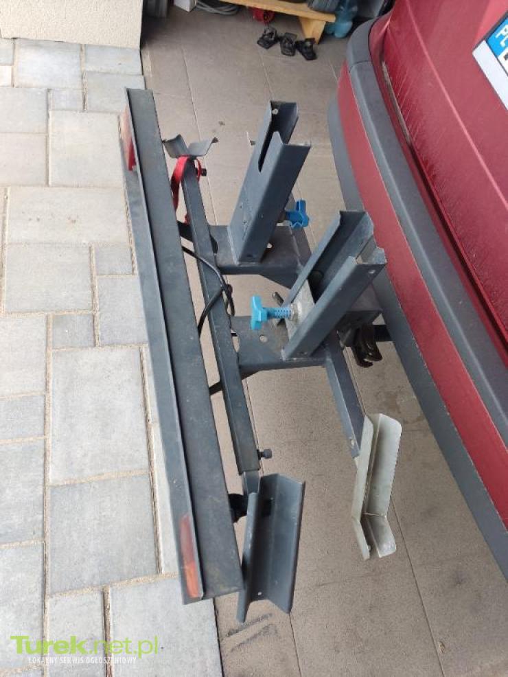 Sprzedam bagaznik rowerowy na hak. Można zabrać 2 rowery. Oprócz dokrecenia na kuli posiada dodatkowe mocowanie, które praktycznie do zera minimalizuje ryzyko opadnięcia bagażnika z rowerami i ich uszkodzenia. Wysuwane płozy pozwolą na dostosowanie do różnych wielkosci ramy. Wtyczka 7 pin.