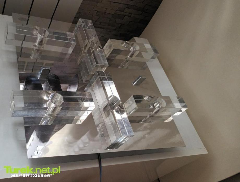 Żyrandol plafon sufitowy porządny masywny,sześć punktów świetlnych. Szkło lustrzane, stan bardzo dobry. 40cm/40cm.