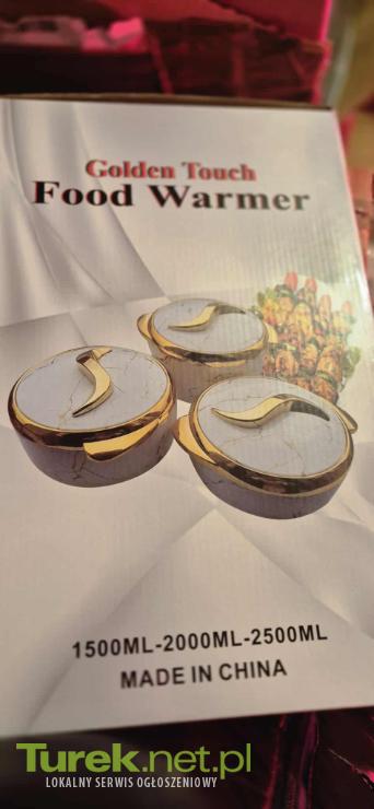 Nowy zestaw podgrzewaczy do potraw Golden Touch. Zestaw zawiera trzy izolowane pojemniki ze stali nierdzewnej. Pojemności pojemników wynoszą 1500 ml, 2000 ml i 2500 ml. Przeznaczone do utrzymywania gorących lub zimnych potraw.