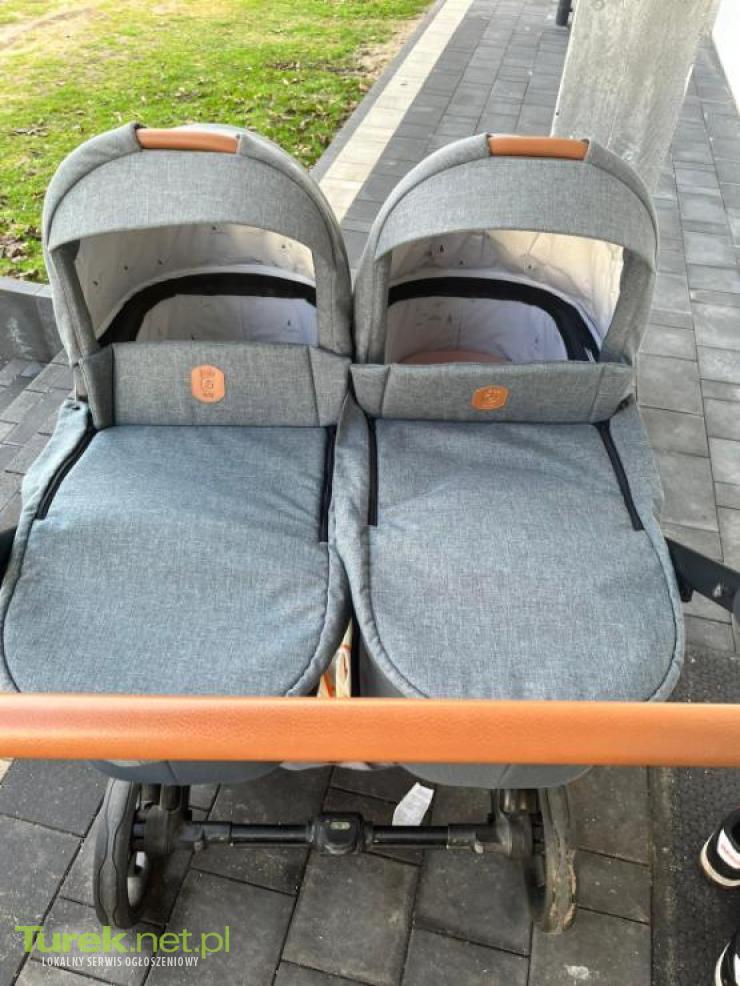 Sprzedam wózek dla bliźniąt jedo duo. Stelaż plus gondole. W zestawie oryginalna torba do wózka oraz uniwersalne adaptery do wózka wpięcia nosidełek/lupin/fotelików samochodowych. Kontakt telefoniczny, brak możliwości wysyłki. Stan jak na zdjęciach. Na rączce mała dziurka w skórze. Stelaż jest porysowany ponieważ wózek mieści się w standardowe drzwi „na styk”, ma 79,5cm szerokości.