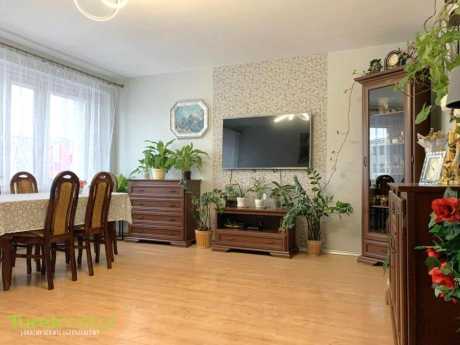 Przestronny, słoneczny salon, oraz 2 pokoje, kuchnia, łazienka, toaleta, korytarz, balkon, piwnica tworzą przytulne mieszkanie pow całkowitej 64,62m2. Znajduje się w ocieplonym bloku na 3 piętrze przy ul Wyszyńskiego w Turku. Salon z wyjściem na balkon został zrobiony z 2 pokoi pierwotnego stanu. Wnętrze mieszkanie remontowane było w 2010 roku. Elektryka miedziana, ściany gipsowane, podłogi panele i terakota. Kuchnia umeblowana, w sypialni zabudowana szafa. Okna pcv z ekspozycja na 2 strony świata. Założona Księga Wieczysta. tel 697639841