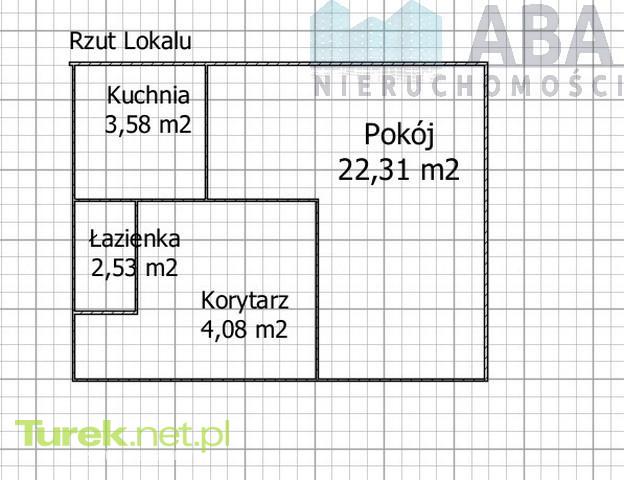 Mieszkanie składa się z: korytarza 4,08 m2, Pokój 22,31m2, Kuchnia 3,58 m2, Łazienka 2,53 m2.