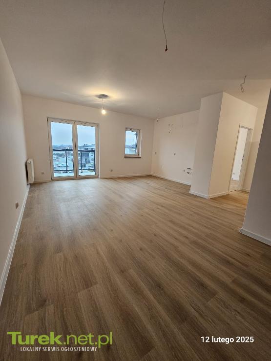 Na sprzedaż 2 pokojowe mieszkanie o pow. 50,52m2, oś Kaliska Park w Turku przy ul. Kaliskiej 61D, mieszkanie mieści się na 3 piętrze w 3 piętrowym bloku z 2025 r. Układ mieszkanie salon z aneksem kuchennym, sypialnia, garderoba, łazienka z wc, przedpokój i balkon. Mieszkanie częściowo wykończone przez dewelopera. Ekspozycja okien północno zachodnia.