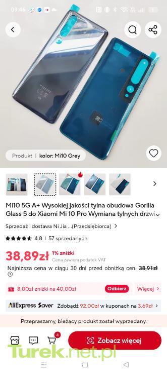 Witam! Mam do sprzedania flagowy model telefonu od firmy Xiaomi jakim jest MI 10 PRO 5G w kolorze Twilight Grey 128GB. Telefon użytkowany 1.5 roku- stan ogólny bardzo dobry (na ekranie jest folia zabezpieczająca). Jedyny minus to pęknięte plecki jak widać na zdjęciu (tył jest szklany i wystarczył mały upadek). Nie wpływa to jednak w żadnym stopniu na użytkowanie telefonu a nowe plecki to koszt 40zl (jak widać na ostatnim zdjęciu). Bateria trzyma bardzo dobrze, wszystko płynnie działa jak na flagowy model przystało. Dorzucam oryginalne etui Xiaomi do tego modelu (w żadnym etui nie widać pęknięć), które jest jak nowe. Cena 650zł.