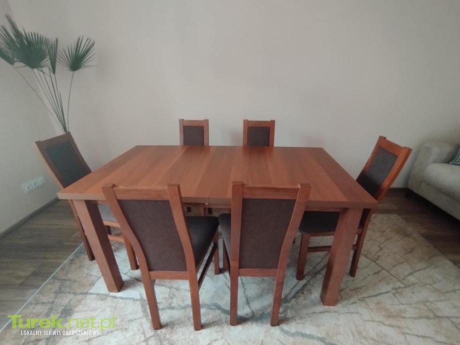 Sprzedam stół i krzesła (komplet), stan bardzo dobry. Wymiary stołu : długość przed rozłożeniem 1,50m. po rozłożeniu 2 m, szerokość 80 cm. wysokość 76 cm.