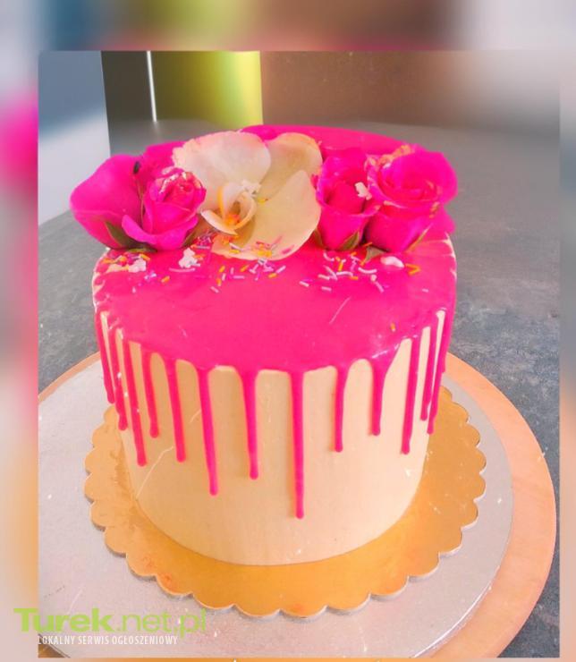 Piękny, domowy tort ozdobiony świeżymi kwiatami i innymi owocami. Doskonały na specjalne okazje lub po prostu na codzienne przyjemności. Smaczny i elegancki deser własnej roboty. Ceny tortu zaczynają się od 90zł za kg Ceny ciasta od 100zł za dużą blachę 25×35cm Serdecznie zapraszam do składania zamówień