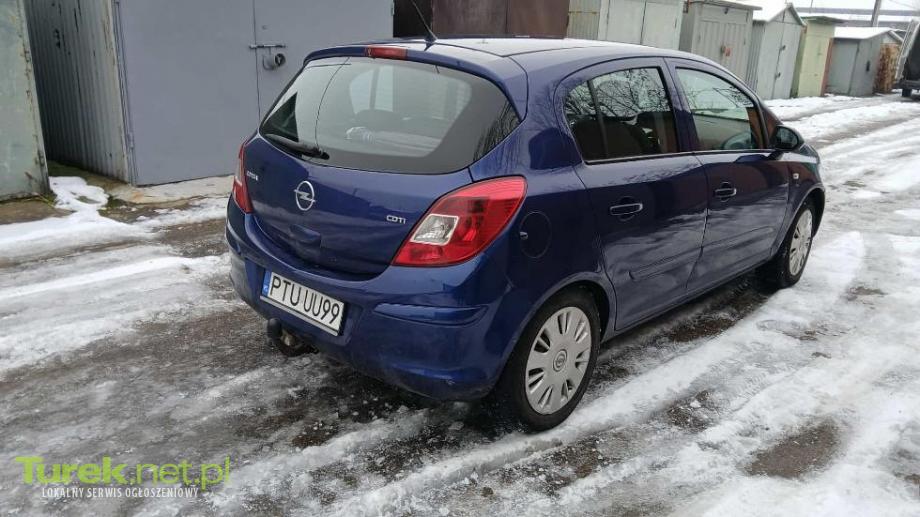 Opel Corsa D Hatchback z bardzo oszczędnym silnikiem 1.3 CDTI ecoFLEX 75Km , rok produkcji 2007, przebieg 176 tyś. Posiada wspomaganie kierownicy, centralny zamek, el. lusterka, el. przednie szyby, ABS, 4 poduszki powietrzne, klimatronic , hak, isofix, radio fabryczne, pełno wymiarowe koło zapasowe. Auto posiada drugi komplet opon z felgami. Samochód garażowany, w pełni sprawny mechanicznie. Olej i filtry wymieniane regularnie. Świeżo po przeglądzie, ubezpieczenie do połowy roku.