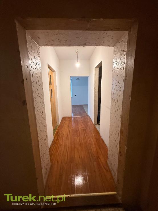 Ściany i sufit: W salonie i kuchni ściany są wyszpachlowane. Sufity w łazience i pokojach zostały obniżone i docieplone (obecna wysokość to komfortowe 2,60 m, co ułatwia ogrzewanie).