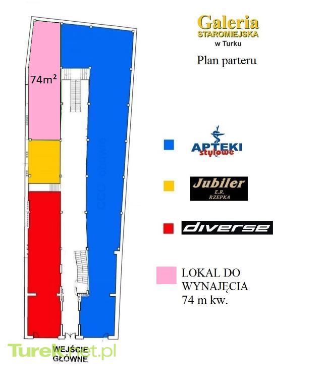 Do wynajęcia lokal o powierzchni 74 m², na parterze domu handlowego Galeria Staromiejska w Turku.