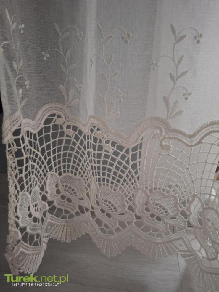 Sprzedam firanę z gipiurą w kolorze ecru na taśmie. Firana pasuje na karnisz 250 cm, wysokość 250 cm.
