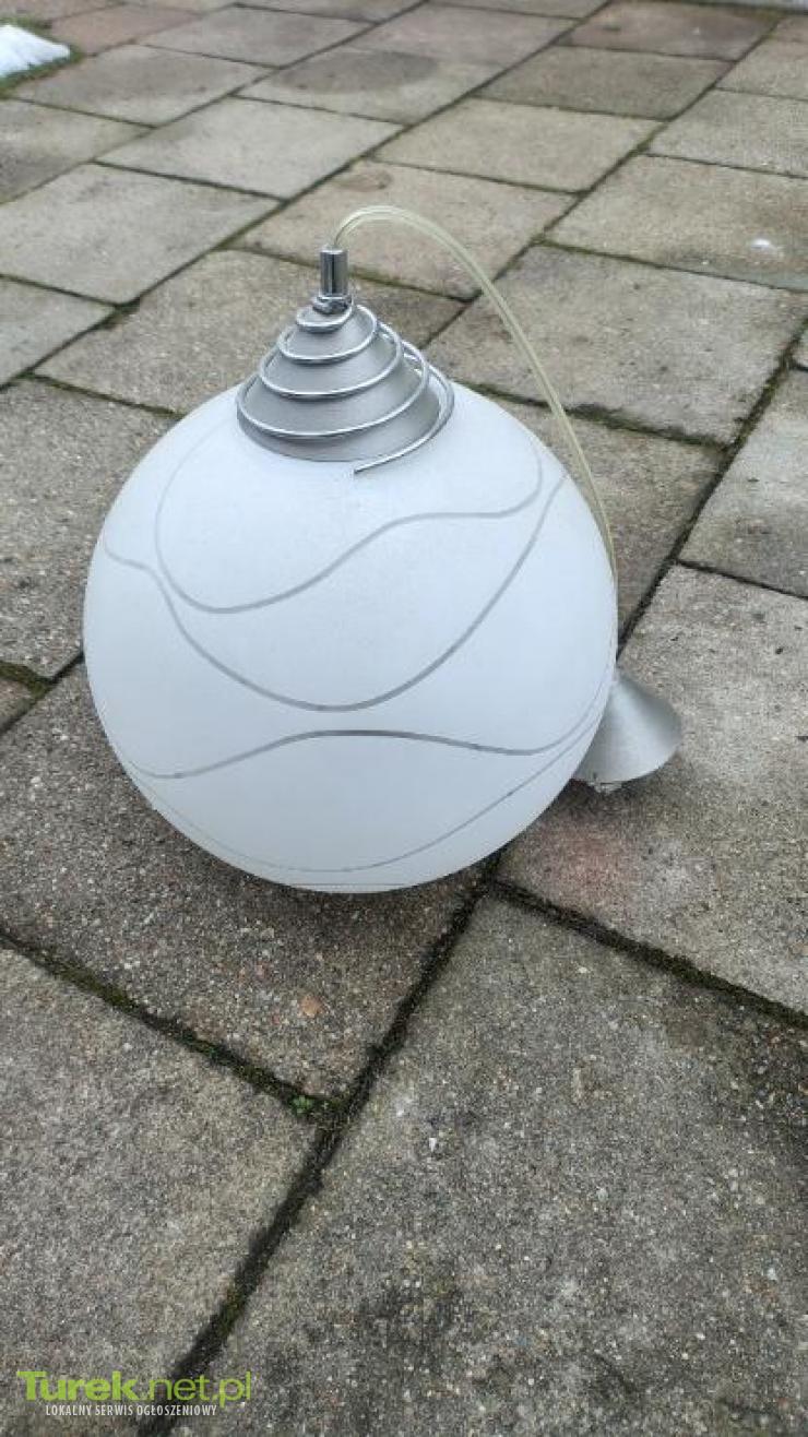 Żyrandol 5 punktów metaloplastyka odcień konstrukcji ciemny brąz, klosze białe oprawki na duży...