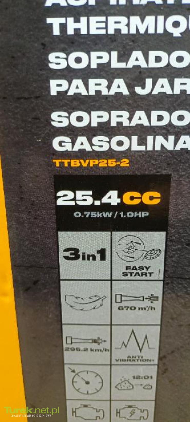 Przedmiotem sprzedaży jest używana w bdb dmuchawa spalinowa z funkcją odkurzacza na liście . Prędkość przepływu powietrza: 260 km/h Rozmiar silnika (cc): 25,4 cm3 Pojemność baku: 0,475 litra Liczba suwów silnika: 2-suwowy Rodzaj produktu: Odkurzacz z dmuchawą Poziom ciśnienia akustycznego: 91,07 dBA Waga narzędzia: 5,6 kg Poziom wibracji: Wibracje ręka-ramię: 9,5 m/s² (dmuchawa), 9,76 / 8,57 (próżnia) m/s²