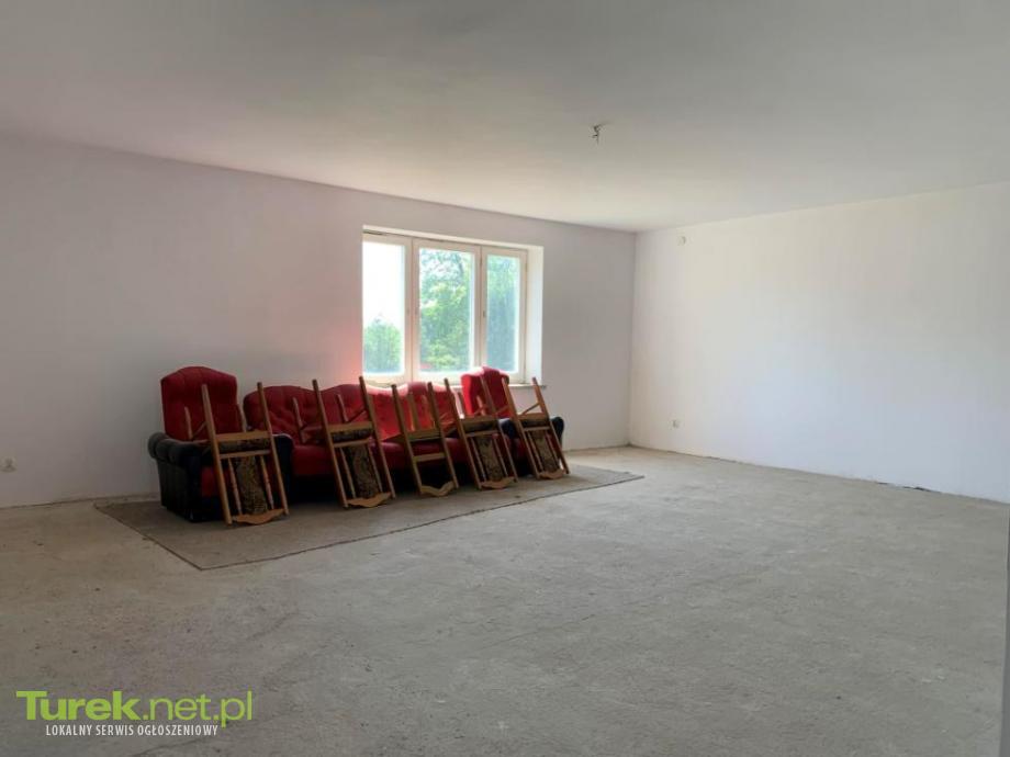 W miejscowości Trzęśniew gm Kościelec na 10-arowej {lub większej} działce piętrowy dom o pow użytkowej 166m2 czeka na nowego właściciela. Budowany w latach 1997- 2007 z cegły i pustaka, dach dwuspadowy pokryty blachodachówką. Ściany zewnętrzne ocieplone , okna drewniane, elektryka miedziana, ściany wewnętrzne na dole gipsowane. Na parterze budynku zrobione podłogi, duża łazienka z wanną w całości obłożona płytkami. Składa się z 5 pokoi, łazienki, kuchni, balkonu, korytarza, ganku. Pod całością budynku piwnica.