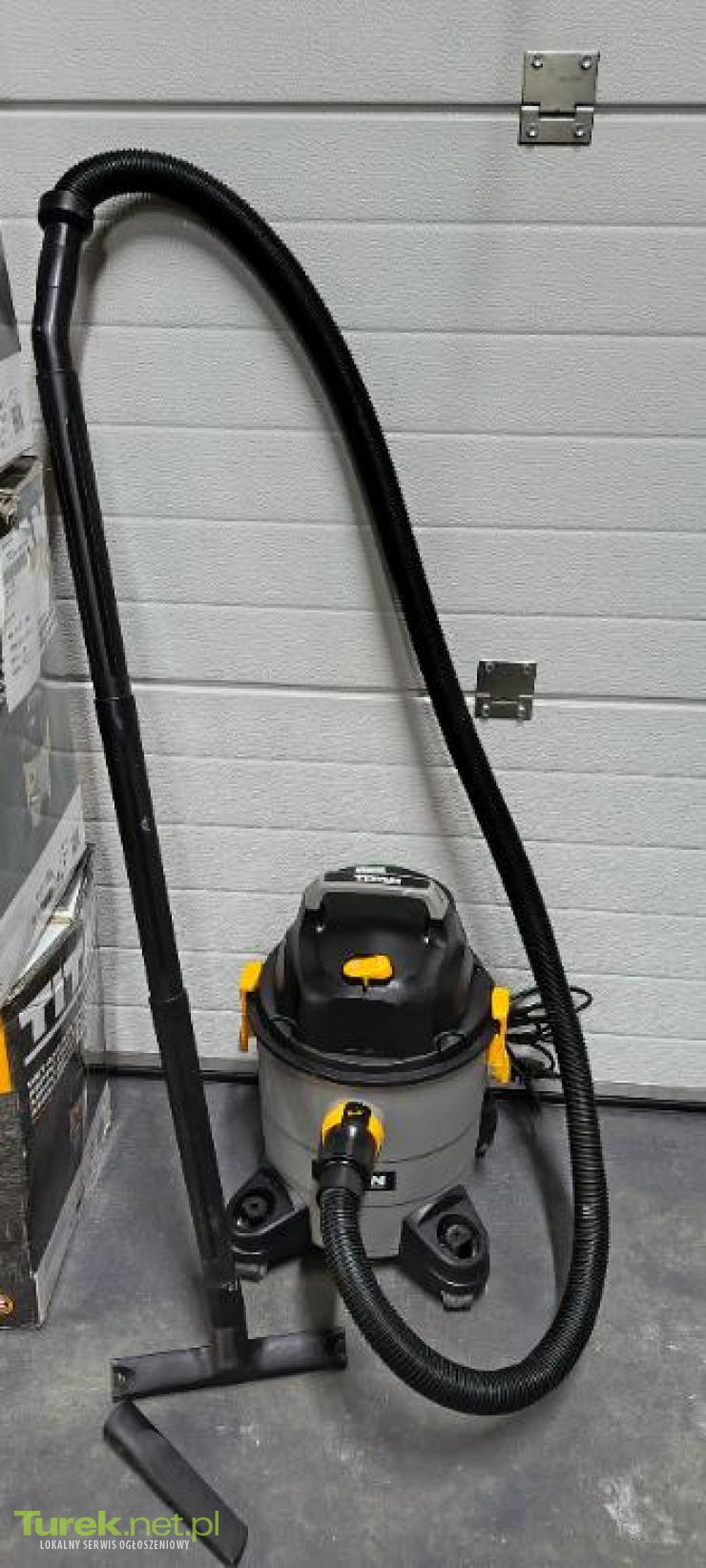 Odkurzacz warsztatowy o pojemności 16l i mocy 1300W. Sprzęt używany, w pełni sprawny. Moc ssania 20 kpa . Nadaje się do pracy zarówno na sucho jak i na mokro.