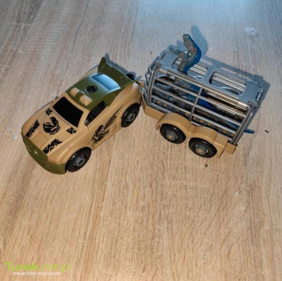 Sprzedam w bardzo dobrym stanie autko z przyczepką z dinozaurem. Cena 15 zł.