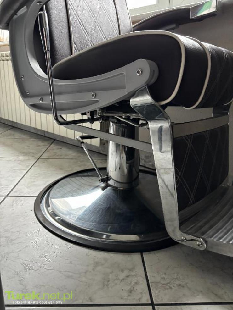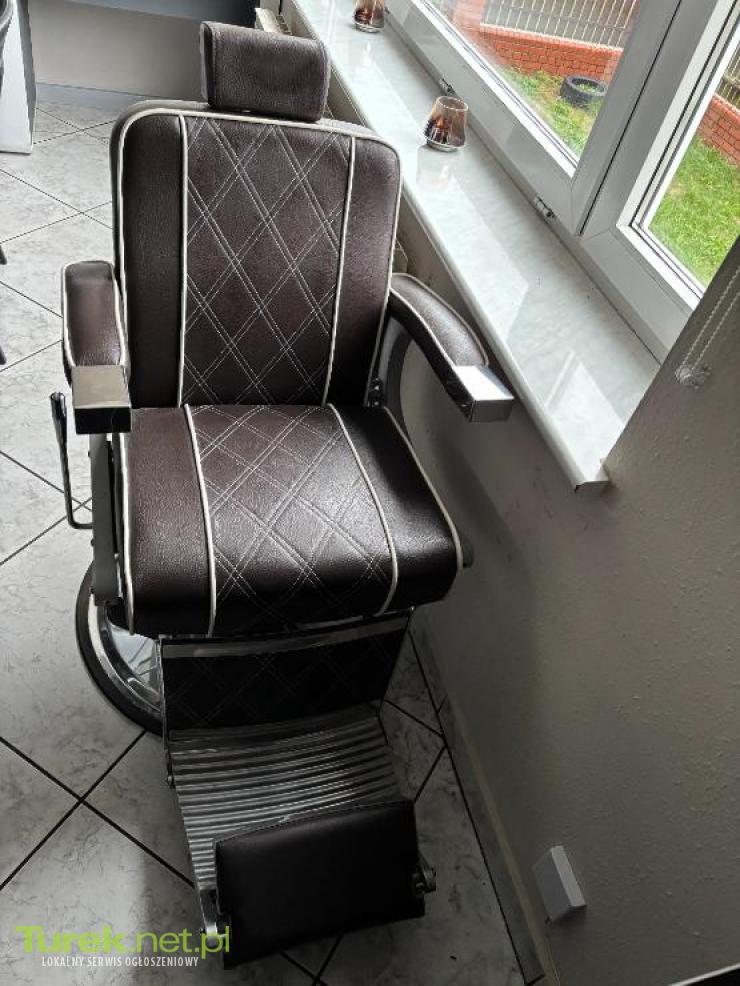 Sprzedam elegancki i wygodny fotel barberski w kolorze ciemnobrązowym z białymi akcentami. Fotel wykonany z wysokiej jakości ekoskóry oraz solidnym, metalowym wykończeniem podłokietników. Doskonały zarówno do nowoczesnego, jak i klasycznego salonu fryzjerskiego lub barberskiego.