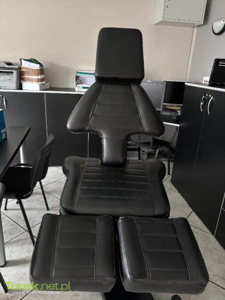 Sprzedam profesjonalny fotel do tatuażu w klasycznym czarnym kolorze. Fotel posiada regulowane oparcie, siedzisko oraz podnóżki, co zapewnia komfort zarówno klientowi, jak i tatuatorowi.