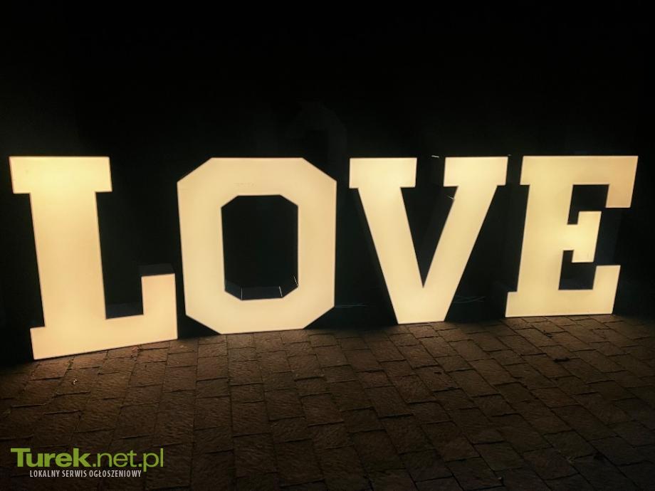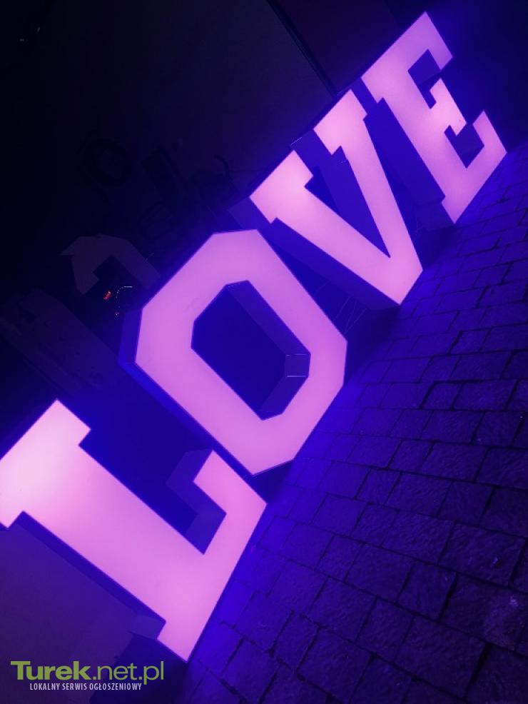Wynajmem napis MIŁOŚĆ 120cm wysokie I LOVE które zmienia kolory u można ustawić sobie na dowolny kolor wysokość 100cm