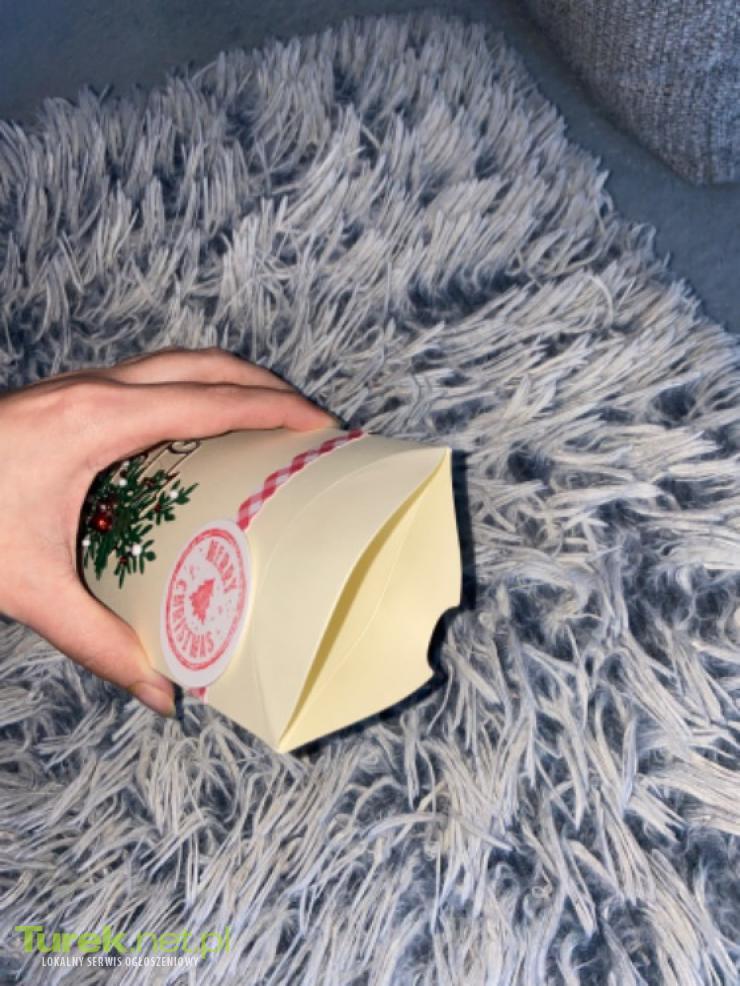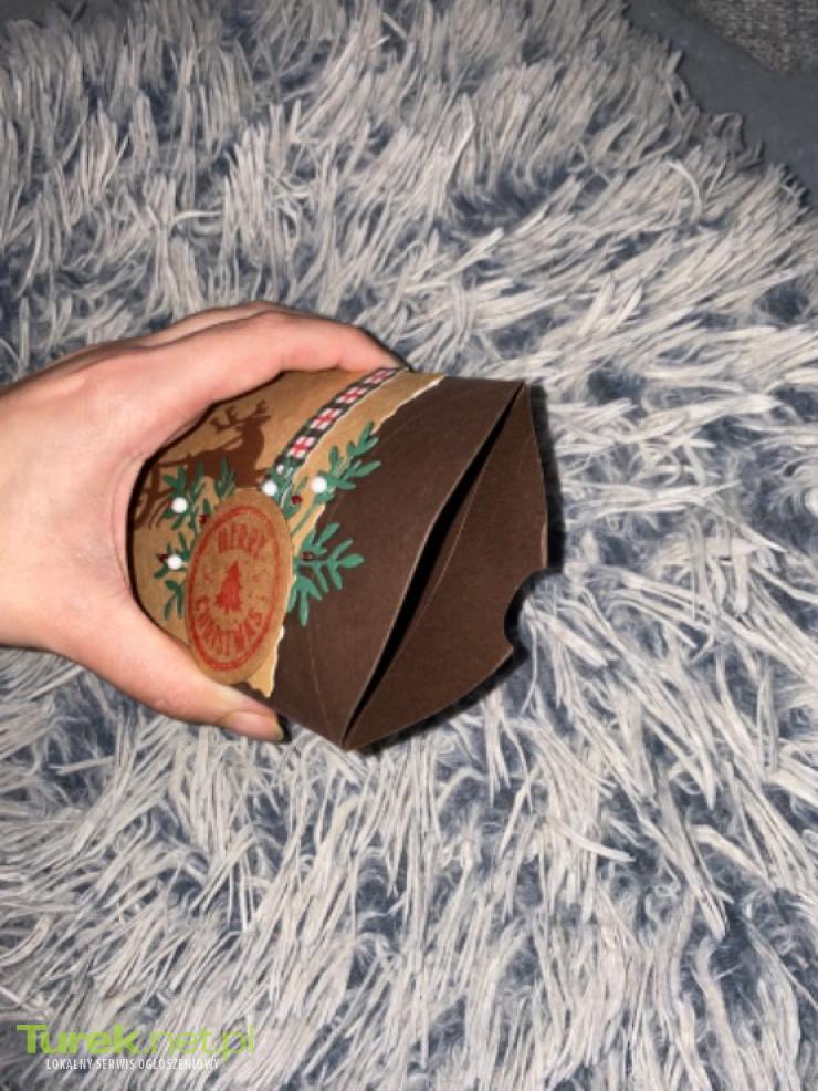 Mam na sprzedaż małe pudełka o wymiarach 13,5 cm x 10 cm idealne na małe świąteczne upominki lub pieniądze. Pudełka są ręcznie robione i cena za jedno pudełko to 8 zł. Do wyboru dwa kolory pudełek - białe i brązowe. Po trzy wzory każdego koloru widoczne na zdjęciu. Osoby zainteresowane proszę o kontakt SMS!