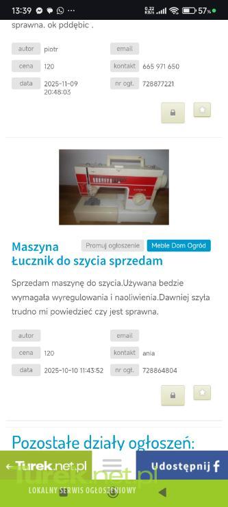 Witam poszukuję kontaktu z panią ania od maszyny do. szycia nie podała pani jestem zainteresowany kupnem kontakt do mnie 724 207 031