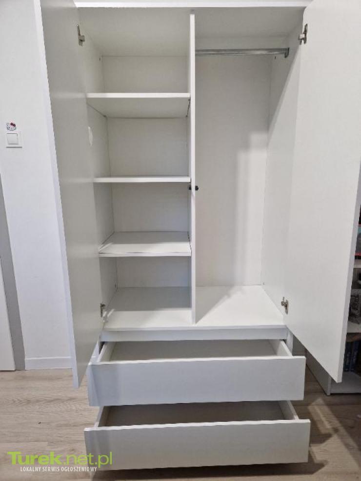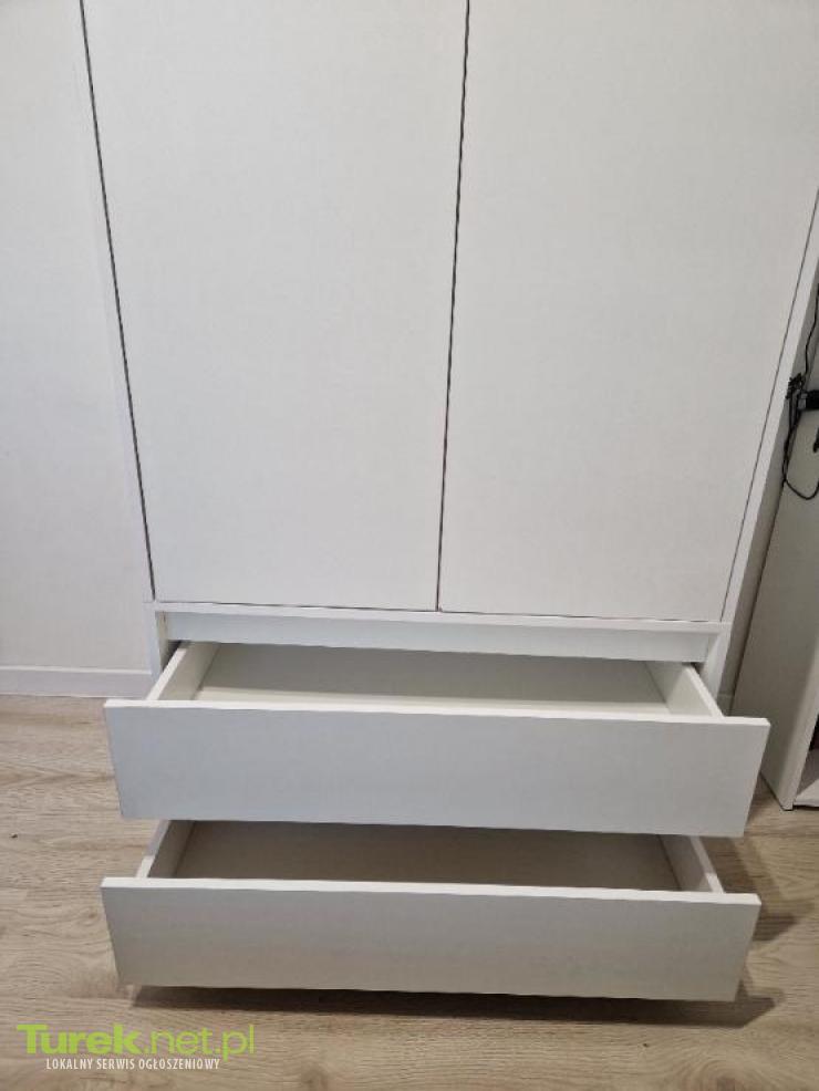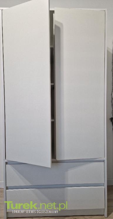 Sprzedam szafę na ubrania, kolor biały mat. Wymiary: 180cm x 90cmx 51cm. Dwie pojemne szuflady, cztery półki i drążek. Szafa otwierana na docisk. Stan bardzo dobry. Używana około roku. Zakupiona za 700zł. Czysta zadbana.