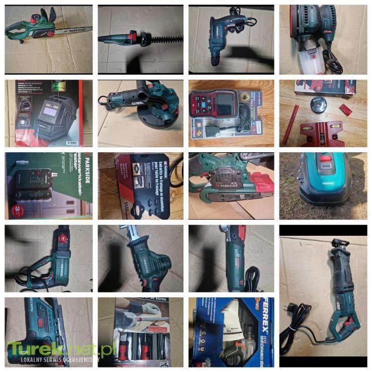 Sprzedam narzędzia parkside i ferrex takim stanie jak na zdjęciu do negocjacji 1. Wiertarka 1050W 140 2. Wiertarka 750W 90 3. Szlifierka taśmowa 140 4. Narzędzie wielofunkcyjne Bosh 170 5. Wyzynarka 12V 70 6. Lis 12V 70 7. Drut spawalniczy 0.8mm 35 8. Tester diagnostyczny 300 9. Nożyce do żywopłotu 12V 110 10. Poziomnica na słupek 30 11. Piła 2200W 230V 280 12. Pilniki 50 13. Szlifierka mimonosna 90 14. Tester RJ45 I anteny 50 15. Lis 230V uszkodzony 50 16. Szlifierka do ścian 200 17. Maski do spawania 130 18. Kosiarka samojezdna FERREX 500 używana z baterią lub sama za 350 19. Wkrętarka ferrex 160 20. Szablon do frezarki 40 21. Szlifierka Bosh z systemem zamykania tarczy x-clock 400 22. Tarcza do szlifowania 76mm 20 23. Drut spawalniczy 0.6mm 35 24. Szczotka druciana do szlifierki 30 25. Zszywki 5000X 30 26. Zszywki 4500X 30 27. Złączki do wody 15 28. Szpachelka 10 29. Brzeszczoty 10 30. Paca gładka 30 31. Zestaw tarcz do ciecia 89mm 60 32. Zestaw filców 125mm 15 33. Zszywki 4000X 30 34. Drut spawalniczy 0.9mm 35 Konin Wielkopolskie lub Wysyłka