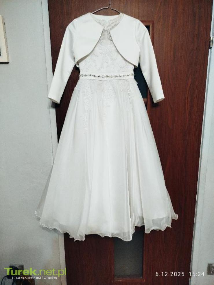 Sprzedam piękna sukienkę komunijną z bolerkiem szytą u krawca rozmiar około 146 ,ale trzeba przymierzyć cena 250zł.Mam również na sprzedaż garnitur chłopięcy 3- częściowy ,cena 300 zł.Mam również koszulę białą od garnituru oraz albę.