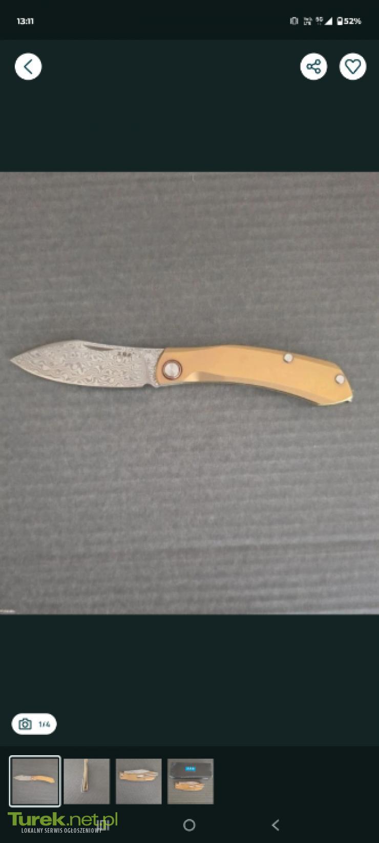 Sprzedam nożyk składany model SANRENMU 7315-TW , w kolorze złotym, ze stali damascenskiej nówka sztuka nieuzywany cena 180 zl.