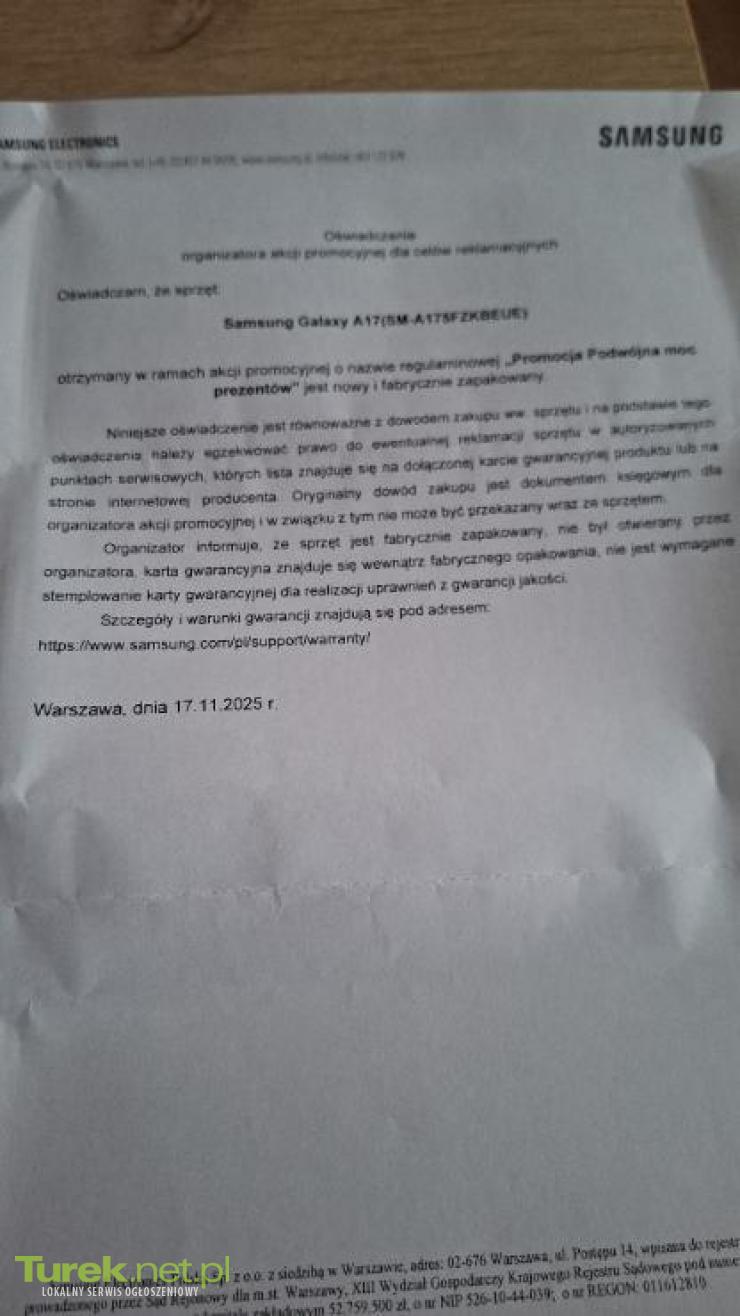SAMSUNG GALAXY A17 nowy z pełną gwarancją