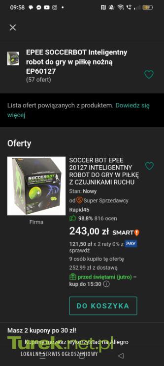 Sprzedam dwa soccer bot epee 20127 inteligentny robot do gry w piłkę czujnikami ruch, zakupiony przez pomyłkę za duża ilość, termin zwrotu minął, cena 190 zł sztuka