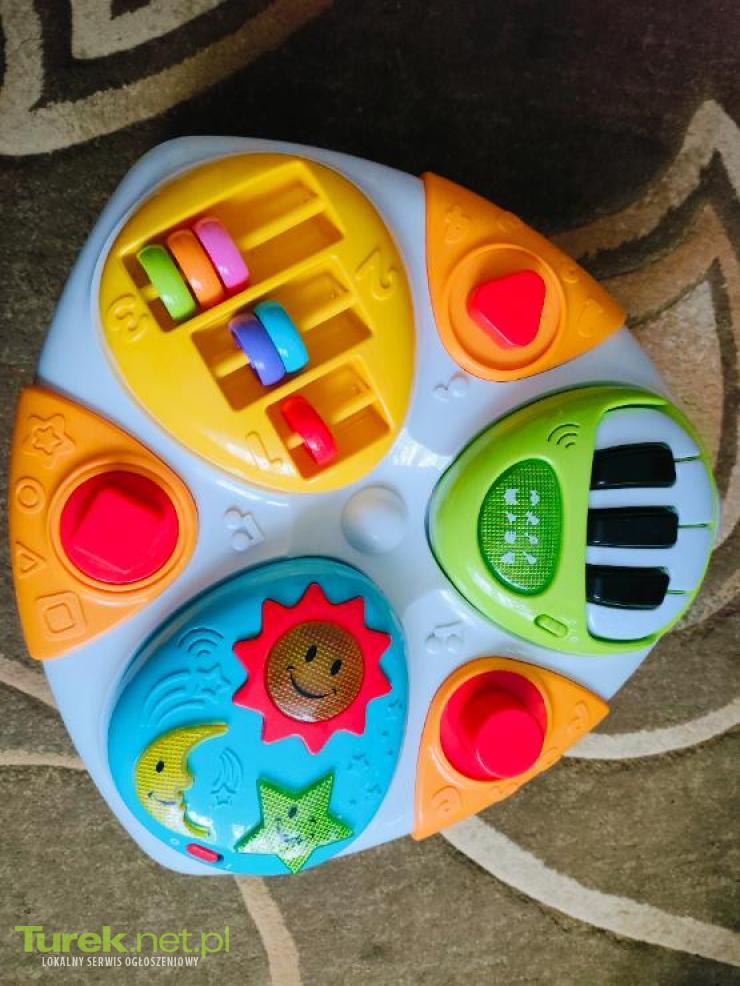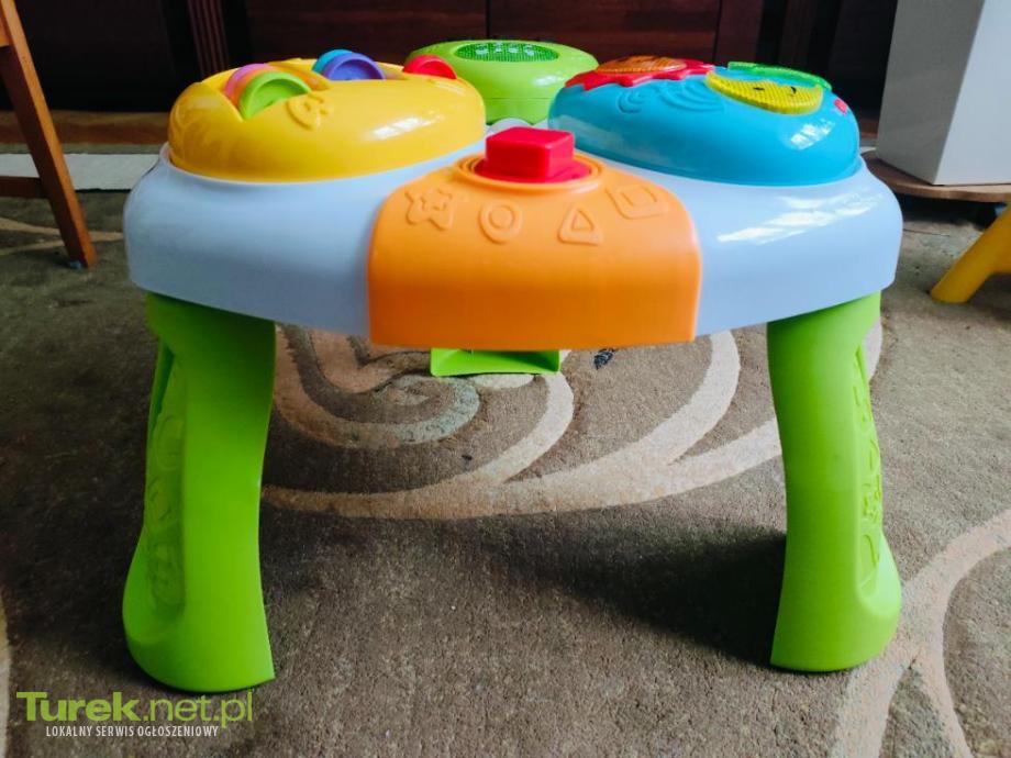 Stolik interaktywny dla dziecka, na baterie. Gra i świeci. Wysokość 35 cm, szerokość ok. 45 cm.