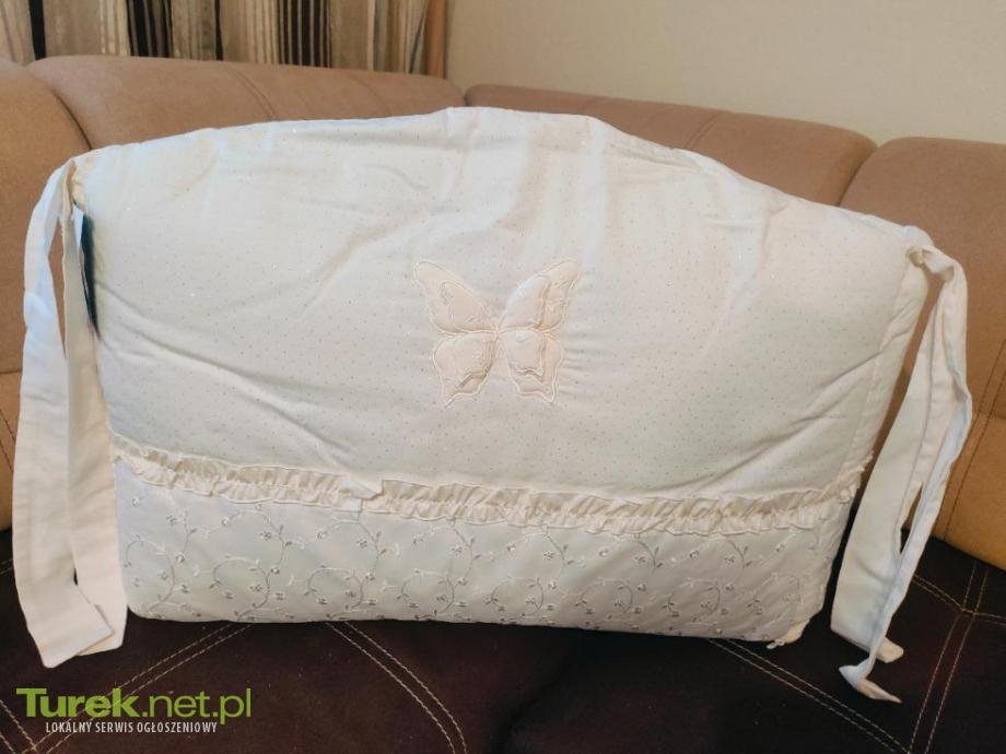 Sprzedam nowy ochraniacz do łóżeczka składający się z 3 elementów. Kolor ecru. Włoski producent Feretti.