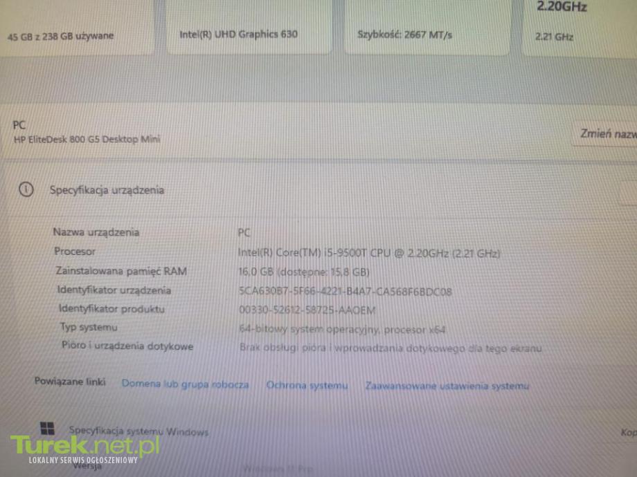 Sprzedam komputer HP EliteDesk 800 G5 Mini wraz monitorem Dell 19 cali z systemem Windows 11 Pro. Komputer idealny do nauki lub pracy biurowej. Zapraszam do zakupu.