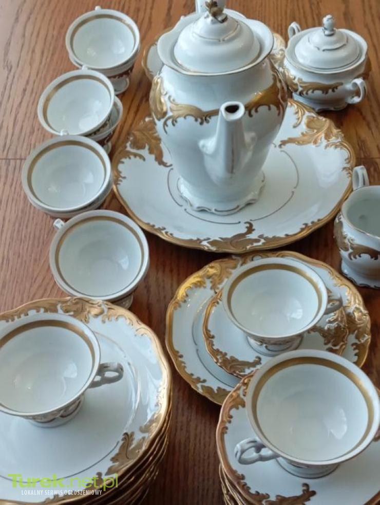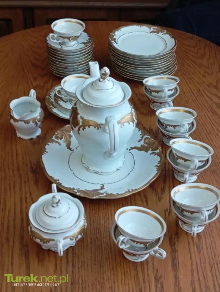 Sprzedam serwis kawowo śniadaniowy na 12 osób z Wałbrzycha złoty liść wyprodukowany w latach 70 stan witrynowy w skład wchodzi 12 filiżanek z podstawkami 12 talerzyków deserowych patera na ciasto dzbanek cukiernica i mlecznik więcej informacji pod numerem telefonu