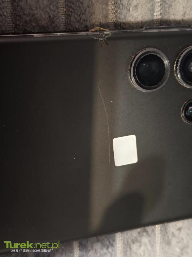 Smartfon Samsung s23 ultra w kolorze czarnym. Posiada 8GB pamięci RAM oraz 256GB pamięci wewnętrznej. Używany. Smartfon był kupowan w neonet, posiadam paragon zakupu. Wyświetlacz w idealnym stanie od początku zależ pieczony folia hydrozelowa, ramki w bardzo dobrym stanie okeljone folia zabezpieczającą. Jednym mankament to delikatne pęknięcie na pleckach widoczne na zdjęciu. W zestwie kilka markowych etui spigen i nillkin. W zestwie daje również oryginalną ładowarkę Samsung 45W z kablem której nie było w zestwie