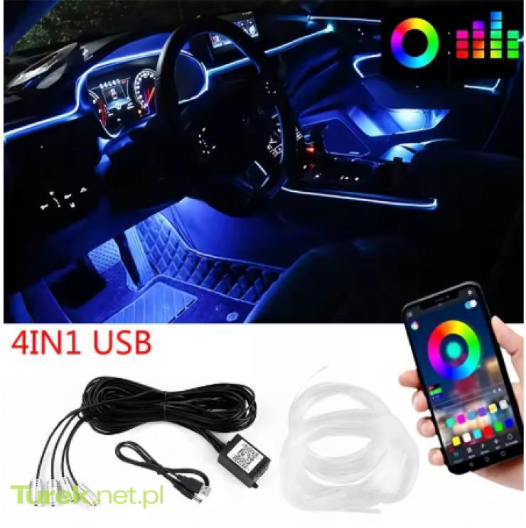 Sprzedam Elastyczne oświetlenie z przewodem EL z kontrolą aplikacji Ambient Atmosphere Strip Light Lampy dekoracyjne 12V Wnętrze samochodu Neon RGB 6 metrów.