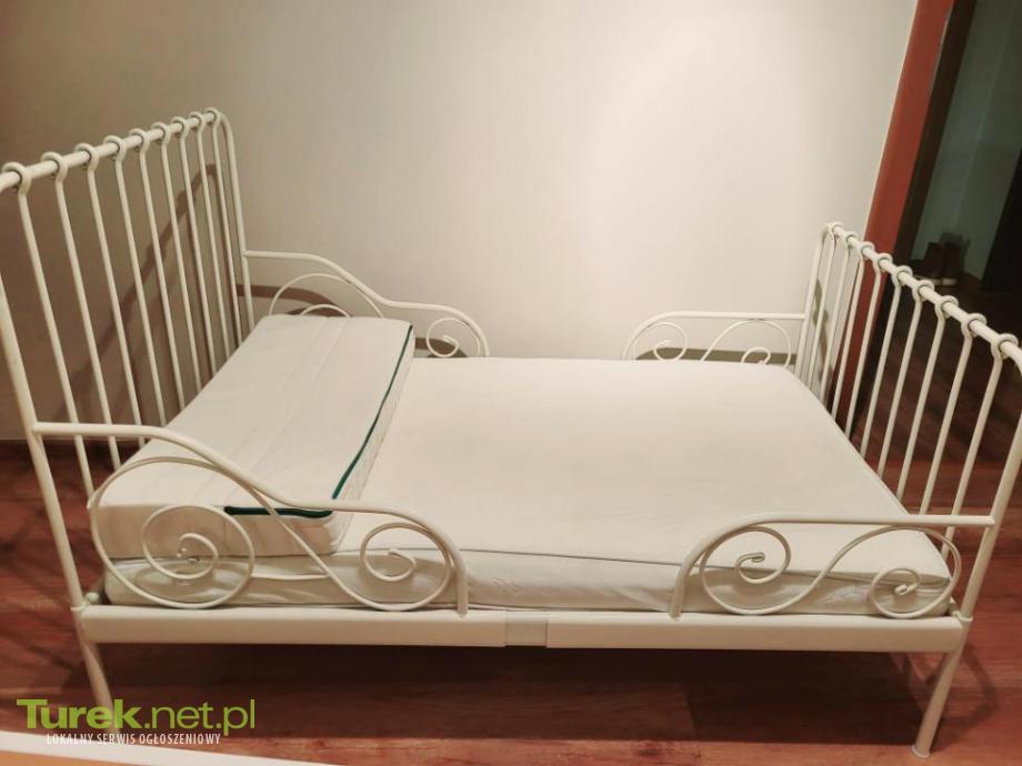 Sprzedam łóżko stalowe Ikea MINNEN o regulowanej długości, kolor biały, szerokość 86 cm długość minimalna 137 cm, długość maxymalna 207 cm, materac regulowany gratis, pokrowiec można prać.