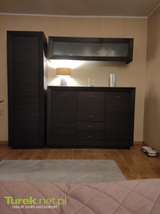 Sprzedam zestaw mebli komoda, szafka wisząca, słupek i łóżko sypialniane. Kolor wenge, stan bardzo dobry.