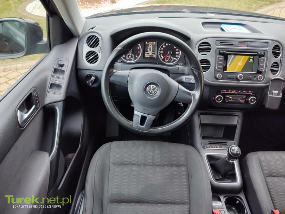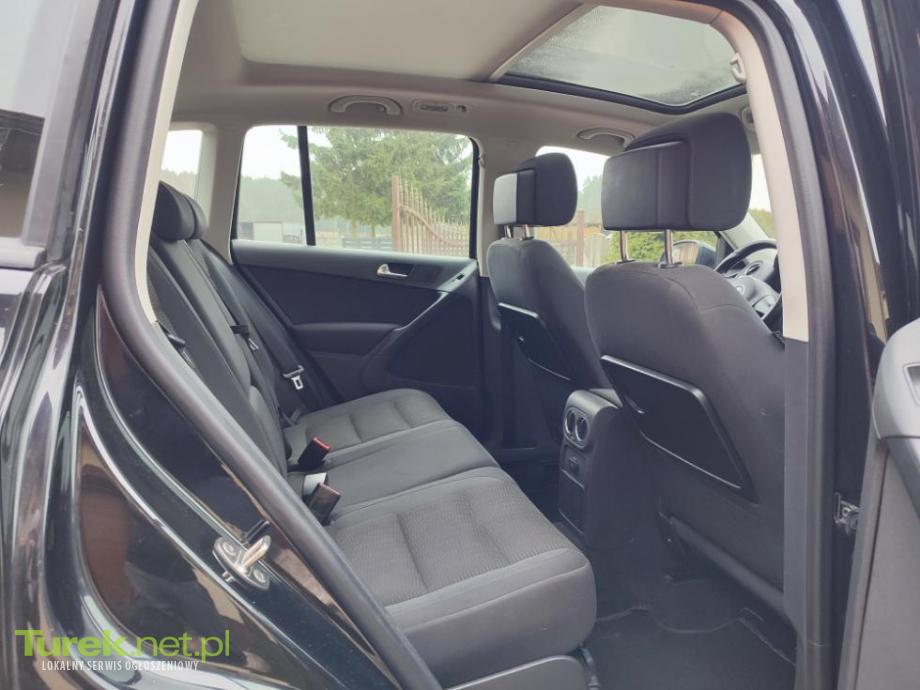 VW Tiquan 1,4TSI 122KM, BlueMotion, 2015r, 149 tys km - pełna dokumentacja przebiegu - 2 kluczyki, I ręce w Niemczech od nowości! Auto bardzo poszanowane, zadbane - lekka szkoda parkingowa lewy przód - patrz zdjęcie - zarysowanie zderzaka. Technicznie auto w optymalnym stanie - klimatyzacja w pełni sprawna. Bardzo dobre wyposażenie pojazdu: szyberdach z panoramą dachem - dach uchylany i rozsuwany, klimatronic 2 strefy, tempomat, parktroniki przód + tył, nowe ogumienie wielosezonowe renomowanej firmy, fabryczne alufelgi, relingi, pełna elektryka, komputer pokładowy z dużym fisem, fabryczne radio z nawigacją oraz wiele innych.