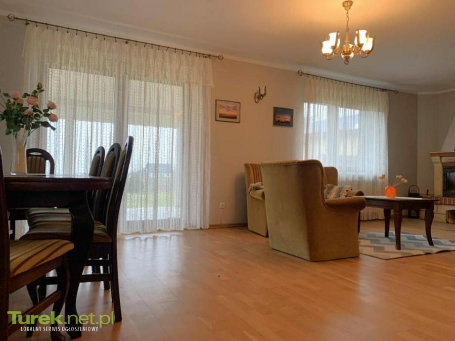 Przytulny domek na zagospodarowanej, ogrodzonej, 10-arowej działce w Kotwasice gm Malanów pow Turek na sprzedaż. Domek parterowy pow 136m2 z użytkowym poddaszem budowany w 2006 r. z garażem w bryle budynku. Dach 2 spadowy pokryty blachodachówką. Okna trójszybowe wymienione w 2023rok podkreślają nowoczesny wygląd całej posesji. Ogrzewanie centralne na ekogroszek, piec 5 generacji wymieniony w 2021r. Instalacja grzewcza na parterze rozprowadzona pod korytarzem, kuchnią, łazienką tak, że daje dodatkowe ogrzewanie ala podłogowe . W salonie dodatkowo kominek, który staję się wizualnym centrum pomieszczenia, wokół którego buduje się atmosferę relaksu, romantyzmu i spotkań rodzinnych a służy jako dodatkowe źródło ciepła. Poza salonem na parterze znajduje się kuchnia, łazienka, korytarz, schody drewniane prowadzące na górę budynku a tam 4 pokoje, łazienka, korytarz. Dach i strop ocieplone Ściany wewnętrzne gipsowane, podłogi na dole deska Barlinecka, na górze panele. Korytarze, łazienki, kuchnia terakota. Elektryka miedziana oraz prąd trójfazowy, woda z sieci gminnej, kanaliza - ekologiczna i ekonomiczna - przydomowa oczyszczalnia. Ściany zewnętrze ocieplone i otynkowane. Do wejście do domu prowadzi duża wiata a z drugiej strony domu wyjście/wejście z tarasu poprzez salon.